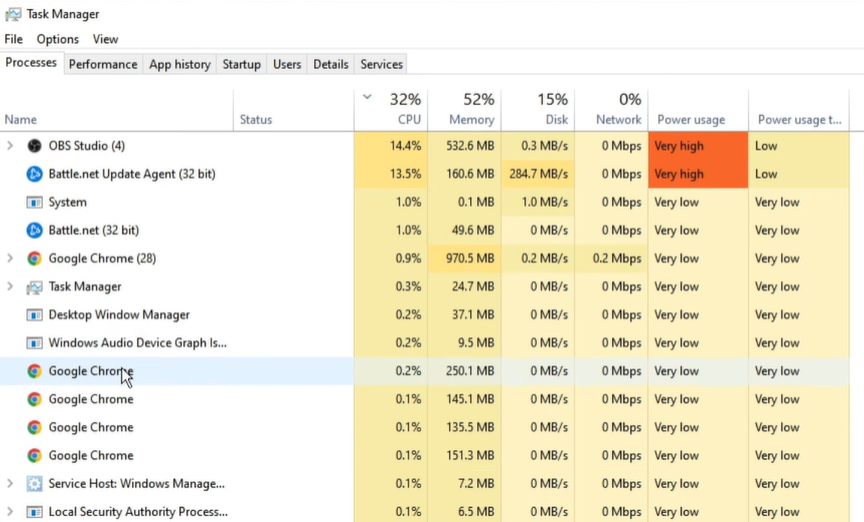 - 查看 '流程' 选项卡,并列出多余的应用程序或后台进程