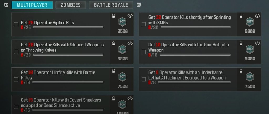 玩家可以跨界完成这些挑战多人游戏,战区, 和僵尸,将所有模式的进度结合起来。