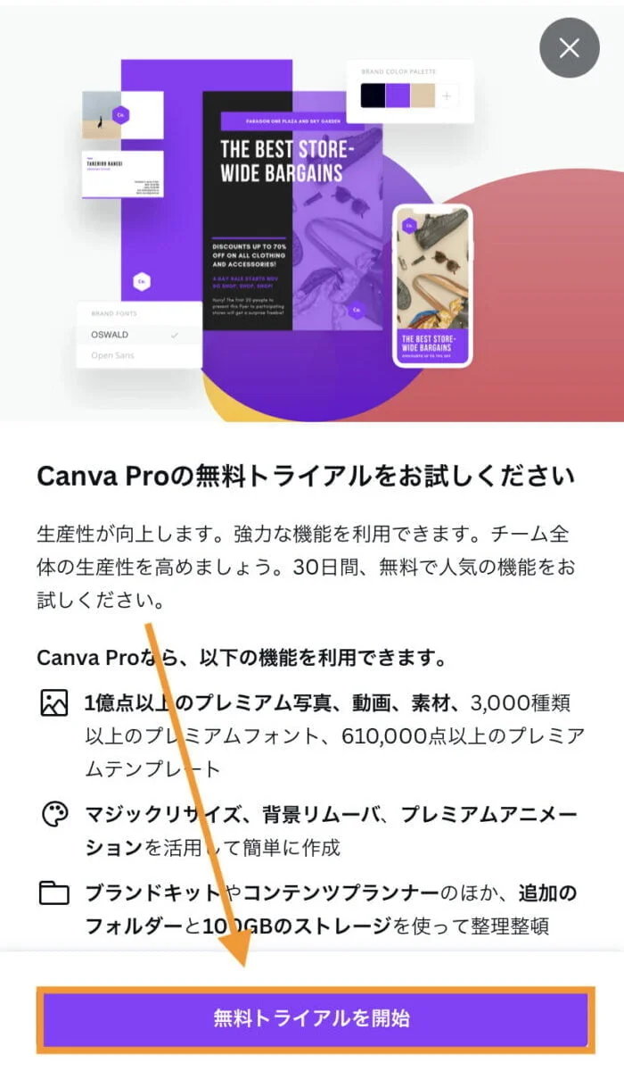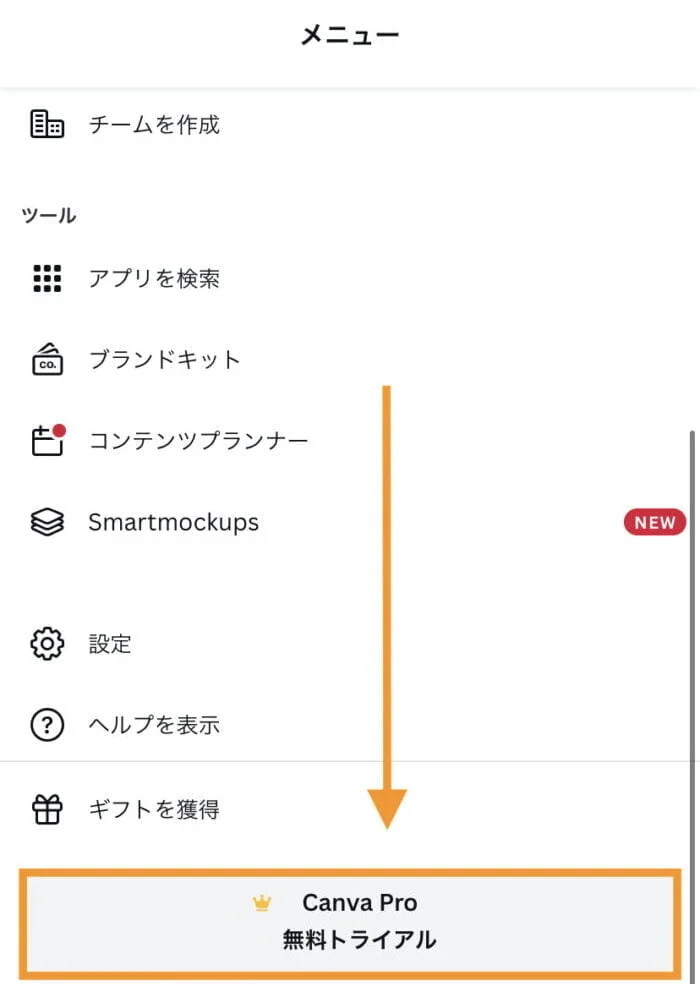 在菜单的底部“ Canva Pro免费试用”轻敲。