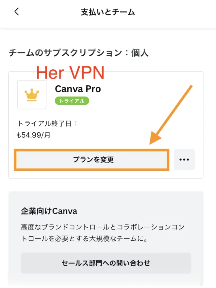 如果您尝试使用Türkiye通过VPN的每月付款使用Canva Pro,但希望通过更改年度计划来节省更多,请尝试更改计划。
