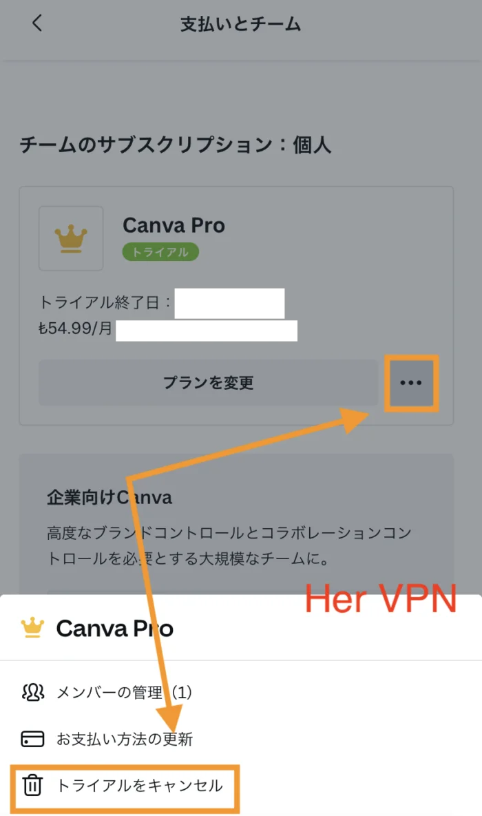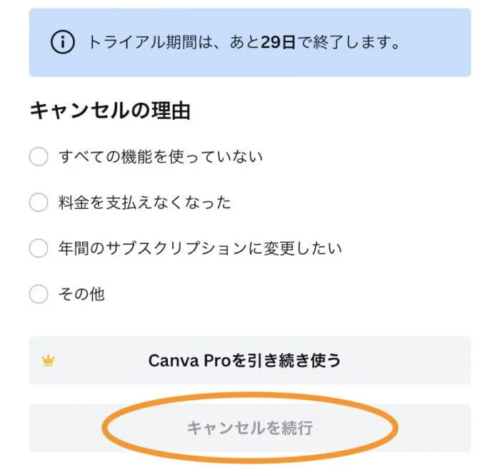 - 如果您已在日本的Canva Pro注册,请取消您的订阅,然后重新注册。