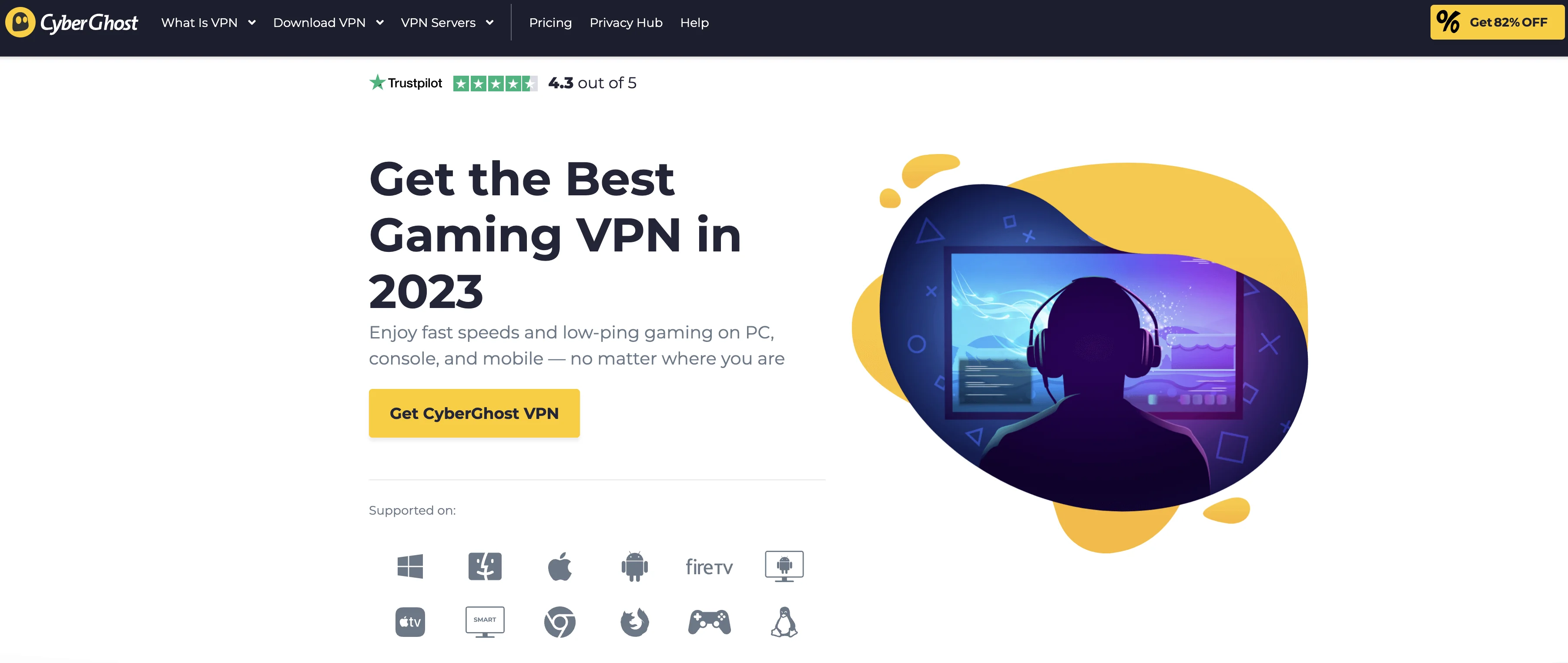 Cyberghost具有大型服务器网络和Wi-Fi保护。负担得起且安全的VPN在游戏玩法中很受欢迎是。