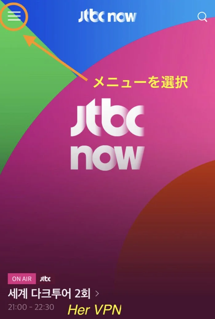 使用VPN从智能手机中「jtbc现在」您只需打开应用程序即可观看JTBC。
