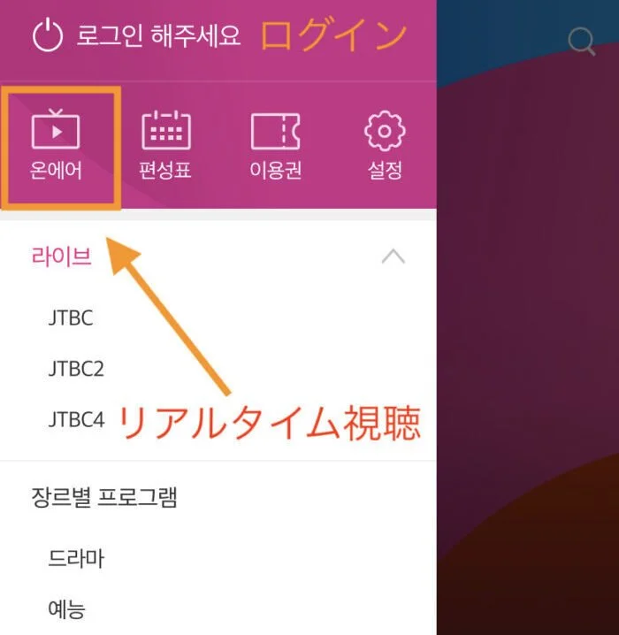 在空中现在,您可以从此处查看JTBC,JTBC2和JTBC4。