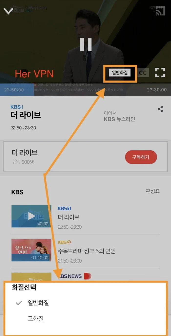 KBS 允许您更改图像质量和字幕。