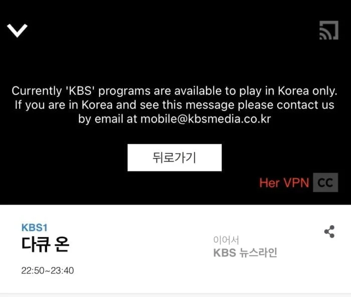 KBS 与其他韩国电视节目(JTBC、Wavve 等)一样,限制海外观看。