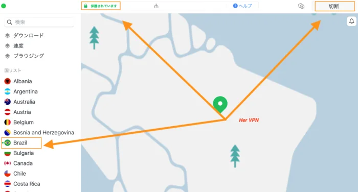 从应用程序中打开 NordVPN 并连接到巴西。