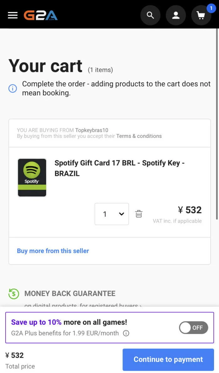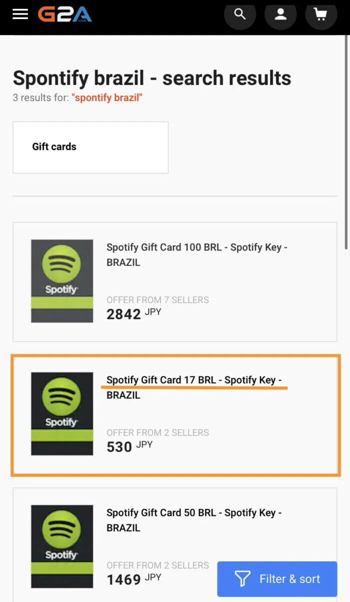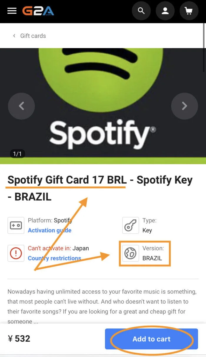 - 使用 G2A 购买 Spotify 礼品卡