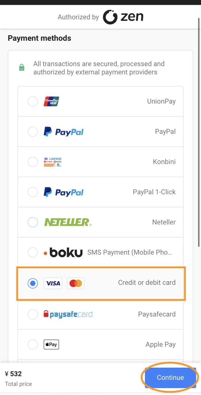 选择您的付款方式继续选择。