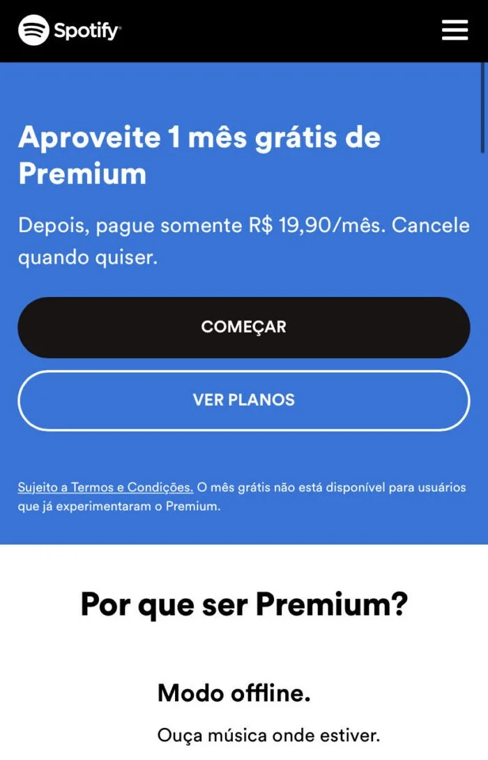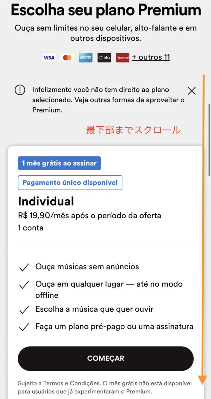 需要注意的是,Spotify Premium 礼品卡的售价为 17.00 雷亚尔,但当你实际从官方网站注册时,一个月是 19.00 雷亚尔。2.0 BRL不足我最终做到了。