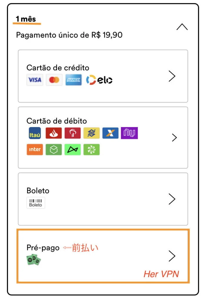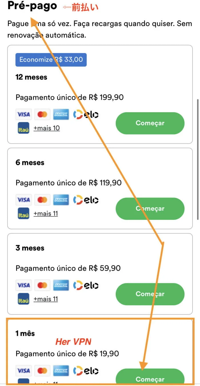 再次选择 1 个月预付款作为您的付款方式。