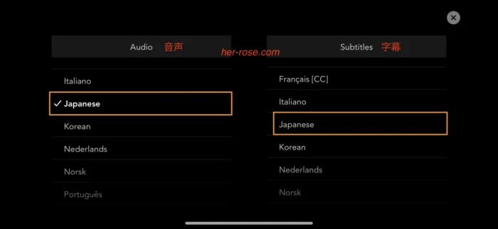 播放视频后,请将音频和字幕从设置中更改为日语。