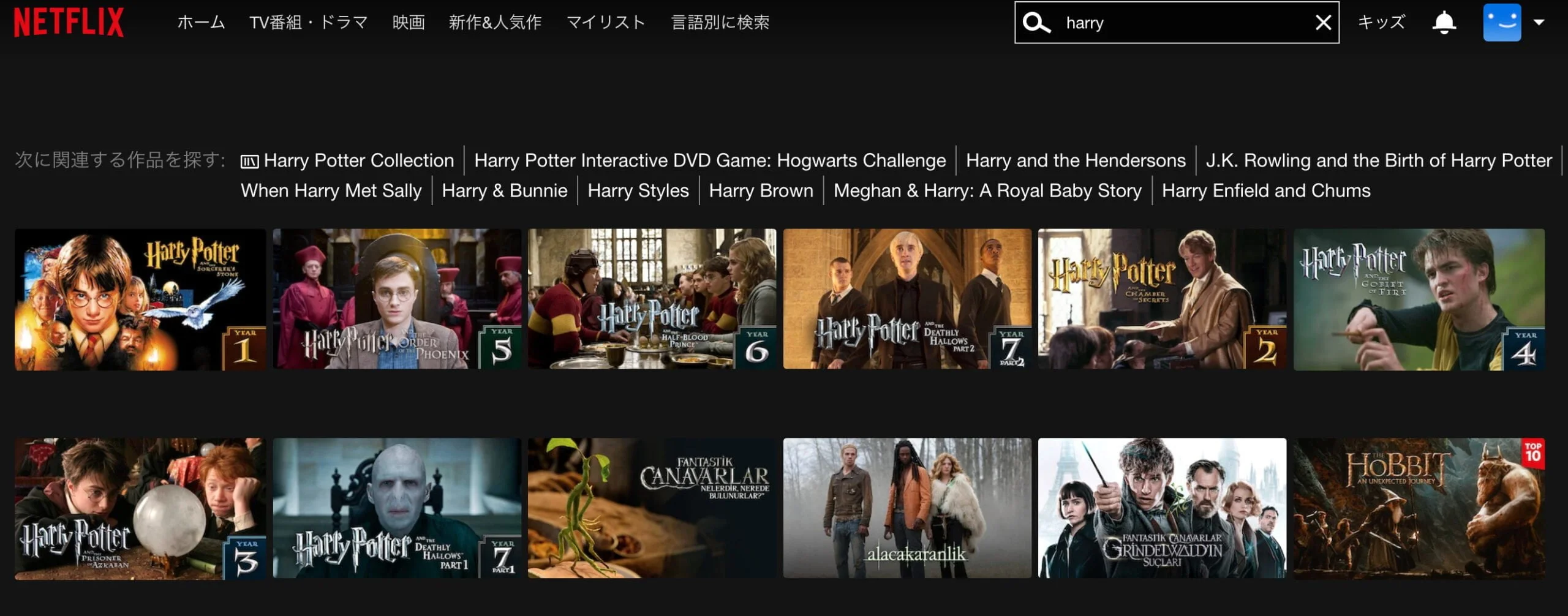 连接到 VPN 并启动 Netflix 后,「哈利」或者《哈利·波特》我们来搜索一下。
