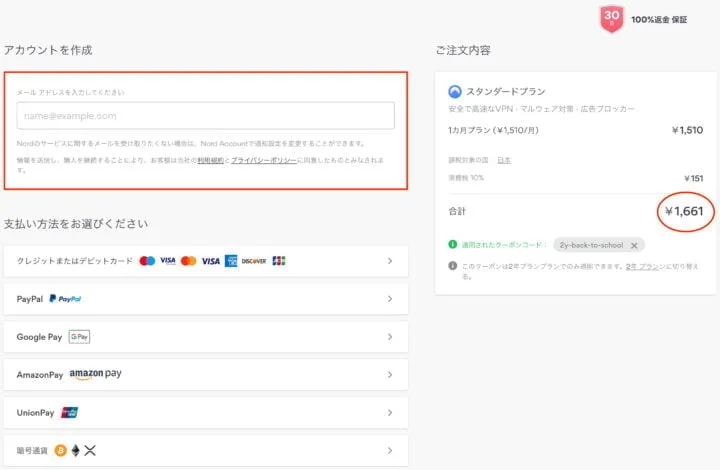 輸入您的電子郵件地址以創建帳戶並選擇付款方式。