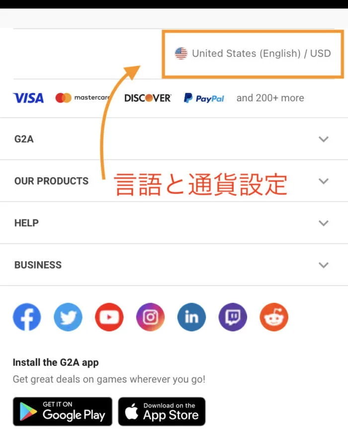 語言和貨幣可以從此頁面的底部更改。