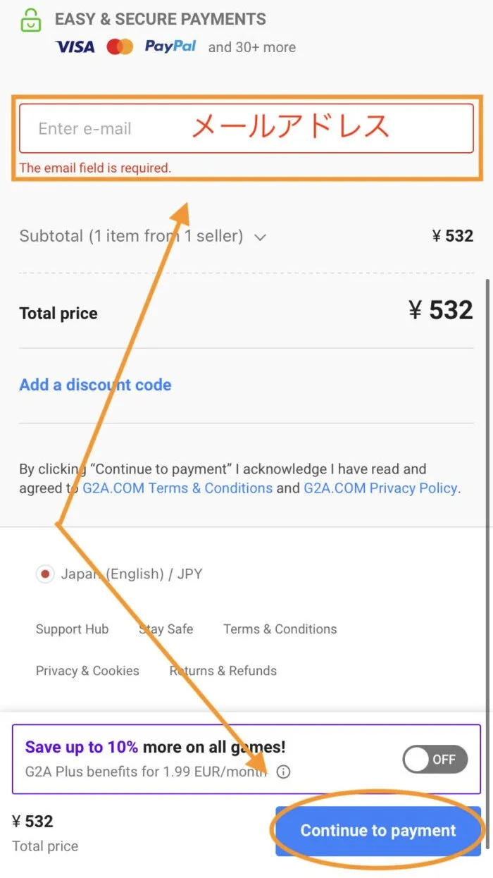 輸入您將收到訂單並繼續的電子郵件地址。