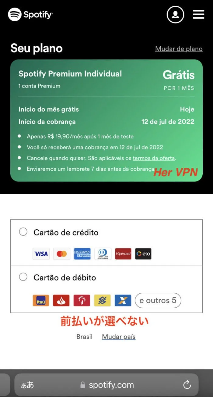 Spotify Premium可以通過VPN從巴西註冊那就是發生的事情約512日元它將變成。