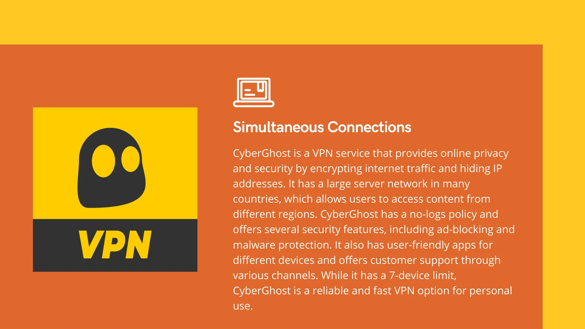 Cyberghost VPN同時連接的優點是,它允許同時連接相對較大的設備,包括七個設備。