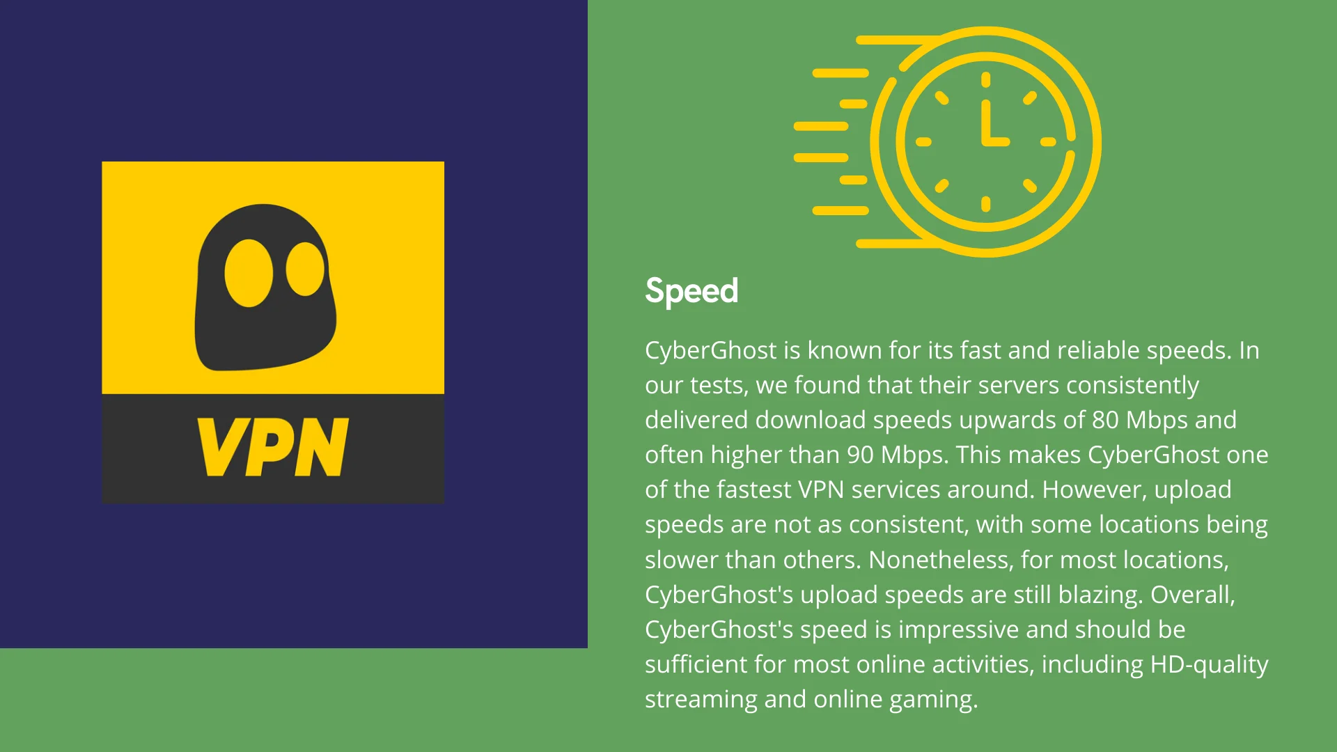 Cyberghost VPN的特徵之一是它提供了高速和穩定的通信速度。